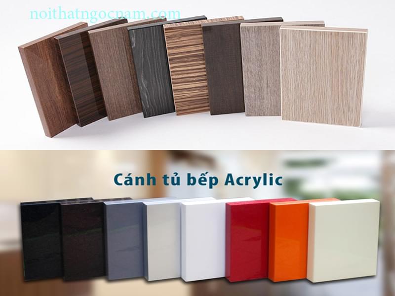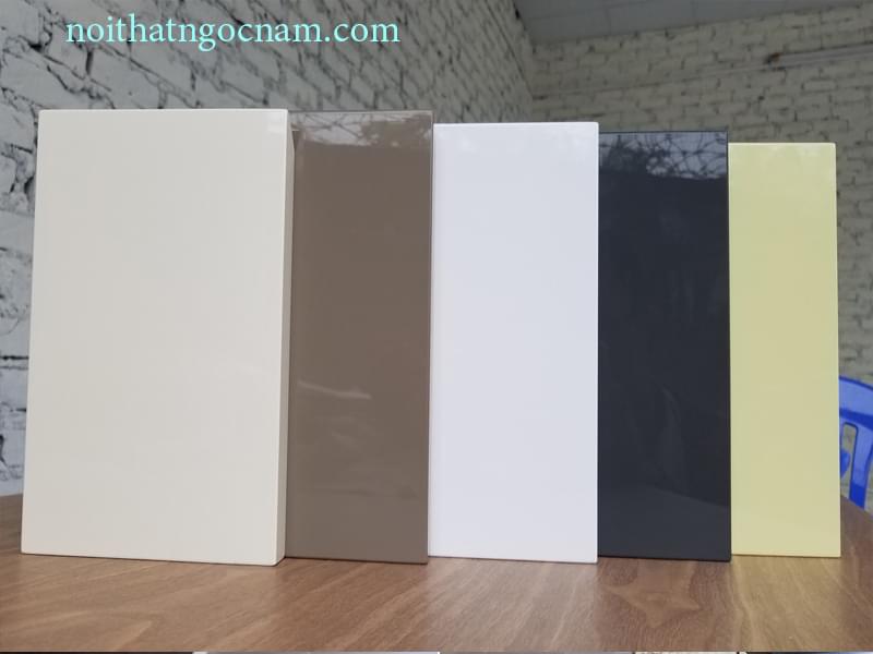 - Chất liệu Acrylic bóng gương với màu sắc vô cùng phong phú và đa dạng. Vẻ đẹp sáng bóng là đặc trưng đầu tiên của tủ bếp Arcylic. Với những người yêu thích vẻ ngoài sáng bóng thì tủ bếp Acrylic sẽ là lựa chọn tuyệt vời. Màu sắc gỗ Acrylic rất phong phú đa với 36 màu từ màu trơn, metalic đến những vân gỗ sang trọng.