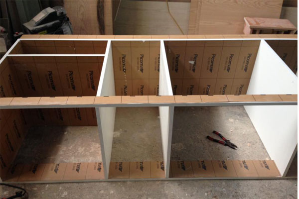 Mẫu thùng tủ bếp có dán đề can logo picomat
