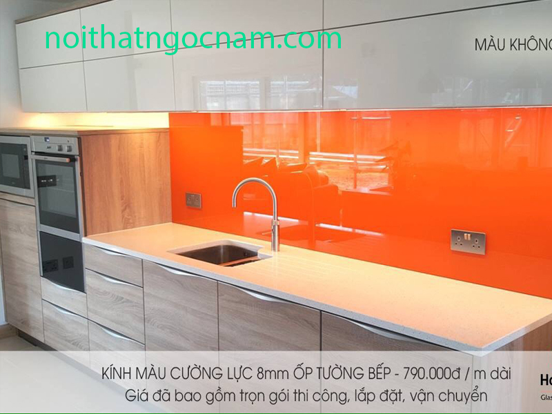 - Giá thành kính ốp bếp vô cùng hợp lý, chỉ với 800.000 vnđ / m dài.