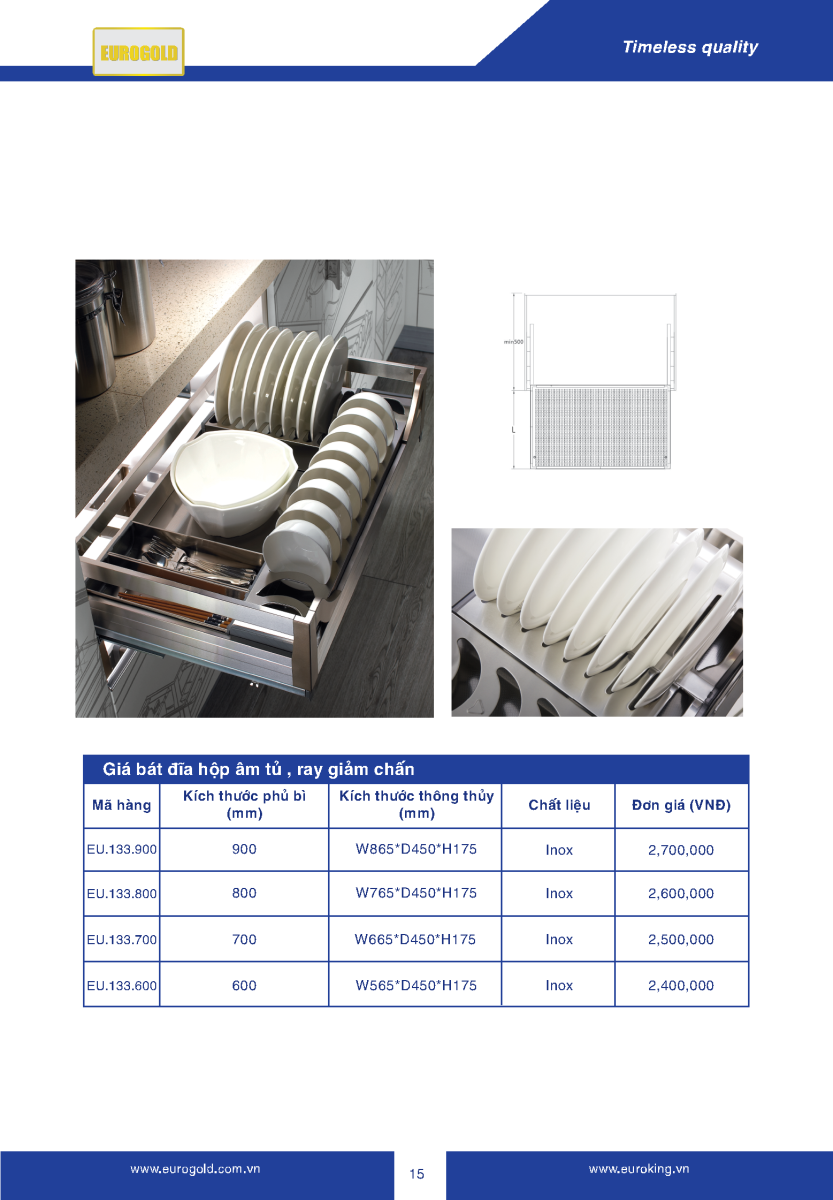 Giá bát đĩa hộp âm tủ được thiết kế hoạt động hoàn toàn cơ học, đây là sản phẩm phụ kiện tủ bếp cao cấp của eurogold được sản xuất trên công nghệ tiên tiến nhất. Có nhiều ưu điểm vượt trội phù hợp với người việt, được phân phối độc quyền tại Việt Nam qua các cửa hàng và đại lý chính hãng.