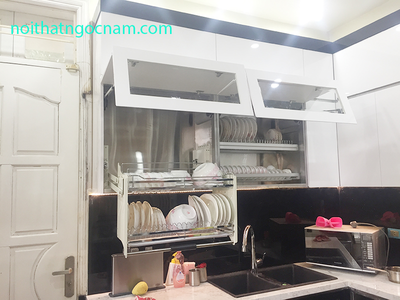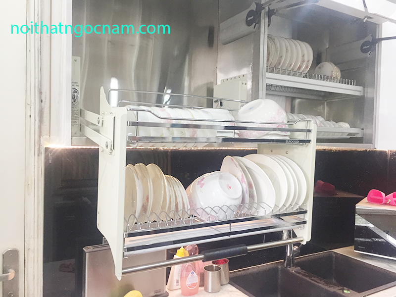 - Phụ kiện giá bát đĩa nâng hạ thông minh được làm bằng chất liệu inox tĩnh điện và công nghệ cao đạt tiêu chuẩn đo lường quốc tế
