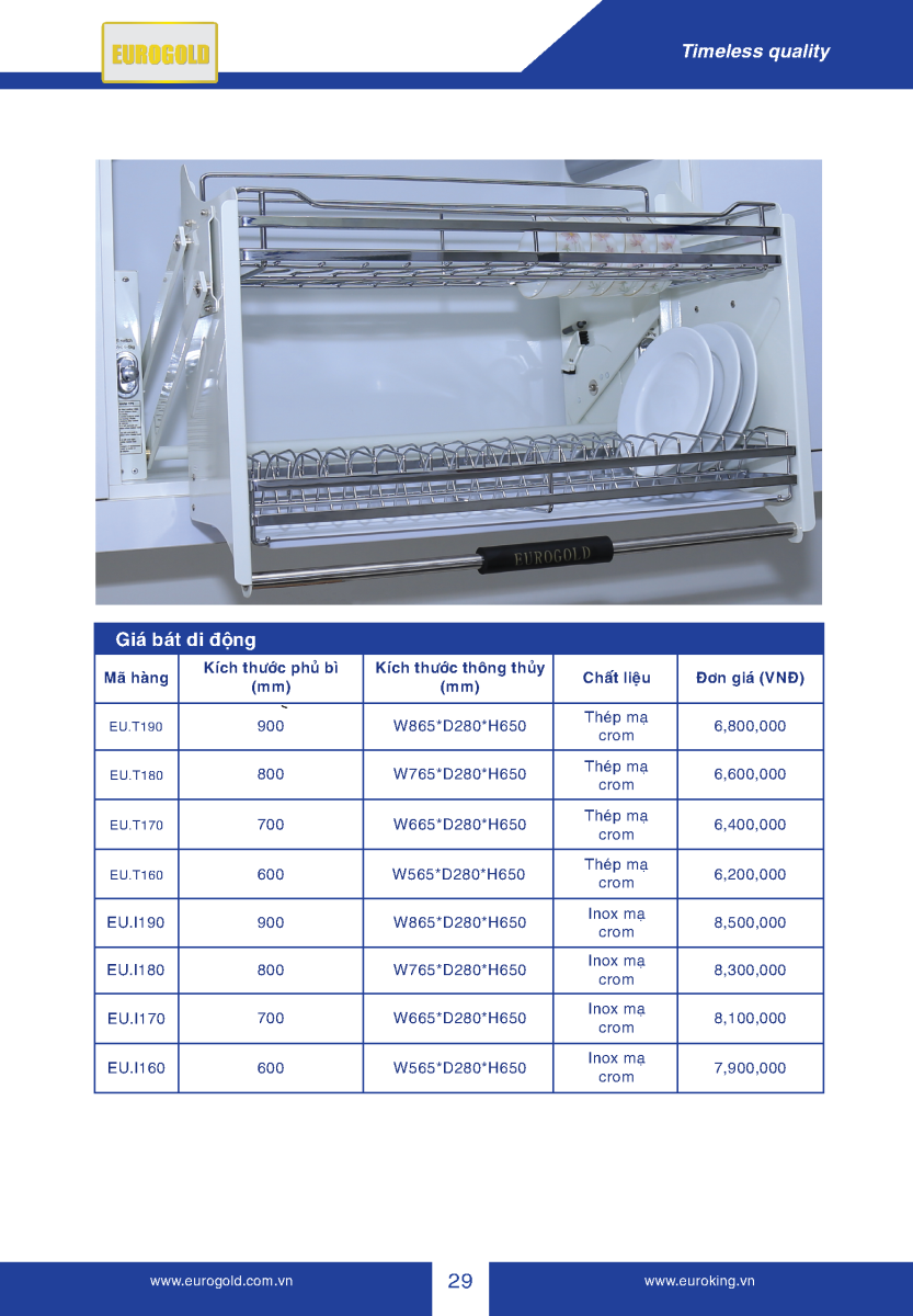 Giá bát đĩa nâng hạ thông minh được thiết kế hoạt động hoàn toàn cơ học, đây là sản phẩm phụ kiện tủ bếp cao cấp của eurogold được sản xuất trên công nghệ tiên tiến nhất. Có nhiều ưu điểm vượt trội phù hợp với người việt, được phân phối độc quyền tại Việt Nam qua các cửa hàng và đại lý chính hãng.