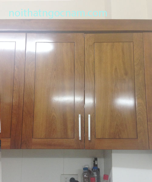 Cánh tủ bếp xoan đào sang trọng với đường vân gỗ nổi bật