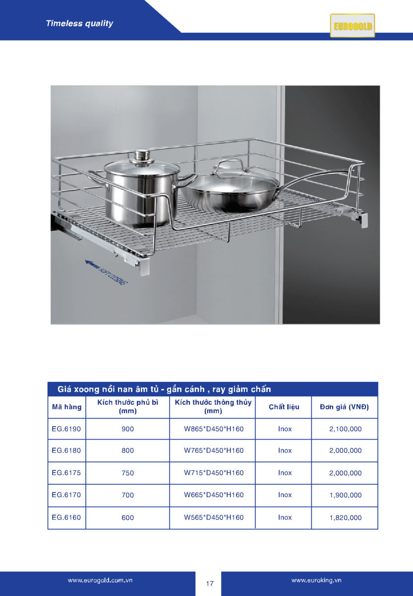 Giá xoong nồi nan được thiết kế hoạt động hoàn toàn cơ học, đây là sản phẩm phụ kiện tủ bếp cao cấp của eurogold được sản xuất trên công nghệ tiên tiến nhất. Có nhiều ưu điểm vượt trội phù hợp với người việt, được phân phối độc quyền tại Việt Nam qua các cửa hàng và đại lý chính hãng.