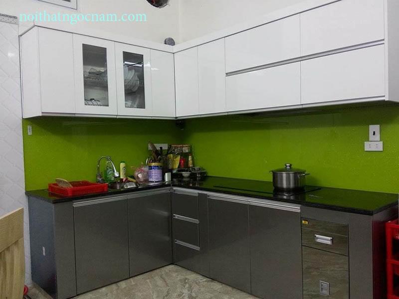Nội thất ngọc nam làm tủ bếp với hai bề mặt vật liệu chính là Laminate và Acrylic, ngoài ra còn có Melamine. Laminate thì có khả năng chịu va đập tốt, đặc biệt là Laminate Nhật Bản thì còn có khả năng chịu được axit. Acrylic là bề mặt bóng gương, khi lên tủ rất đẹp nhưng lại dễ bị trầy xước. Bạn có thể làm kết hợp tủ bếp trên bằng Acrylic và tủ bếp dưới bằng Laminate để đảm bảo được tính thẩm mỹ và độ bền của sản phẩm.