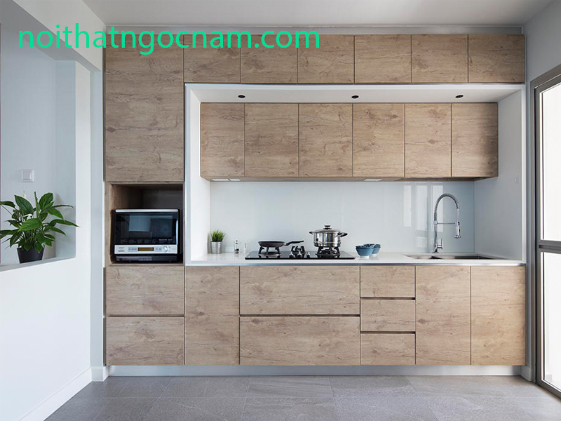 - Vệ sinh dễ dàng: Bề mặt của tủ bếp laminate có chất chống trầy xước và bám vết bẩn vì vậy bạn hoàn toàn yên tâm khi lau chùi thỏa mái mà không sợ tủ bị xước hay phai màu như các mẫu tủ bếp khác.