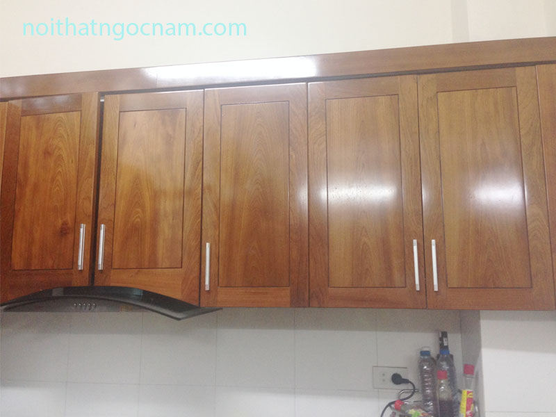 Tủ bếp gỗ xoan đào cao kịch trần đăng lắp tại chung cư