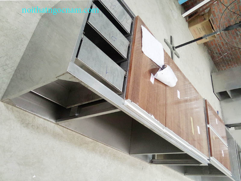 Cũng vẫn là thùng tủ bếp inox nhưng được hàn bằng thủ công tạo ra nhiều mối hàn