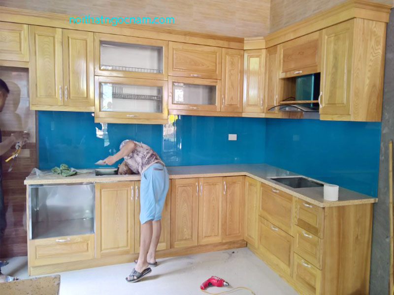 Xưởng nhận thiết kế thi công đóng tủ bếp gỗ sồi tại Thái Bình