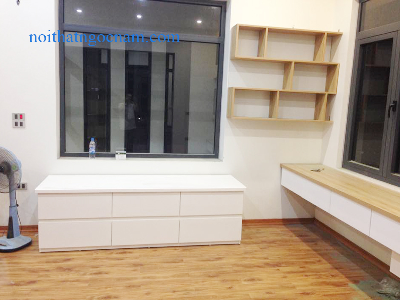 thực tế sau khi thi công công trinh nội thất gia đình nhà chị hương. mạo khê - quảng ninh được thi công bằng gỗ công nghiệp phủ melamine kết hợp với sơn và acrylic cao cấp.