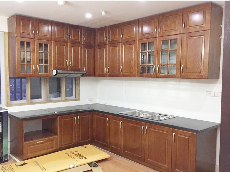 Mẫu tủ bếp gỗ tự nhiên vẫn là lựa chọn đầu tiên của nhiều gia đình khi lựa chọn làm tủ bếp. Bởi mẫu tủ bếp có nhiều ưu điểm như chắc chắn, giá thành hợp lý, độ bền cao phù hợp nhu cầu của nhiều gia đình