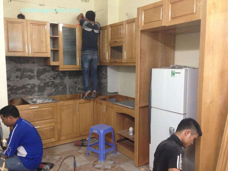 Từ những ý tưởng của chị chúng tôi đã thiết kế cho chị một bộ tủ bếp gỗ sồi nga hình chữ L với đầy đủ yeu cầu của chị. Sau khi vẽ bản vẻ 3D cung như trao đổi lại với chị chúng tôi đã thống nhất được với chị và mẫu tủ bếp để tiến hành thi công đóng tủ bếp tại xưởng của chúng tôi. sau khi thi công 10 ngày tiến hành lắp đặt tủ bếp gỗ sồi nga như hợp đồng đã ký kết.