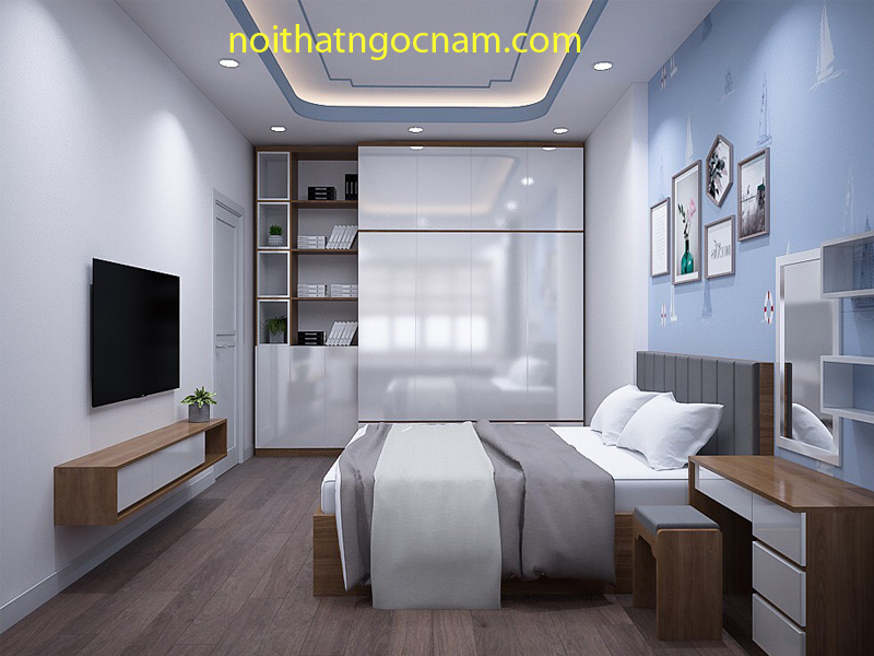 với mong muốn có một không gian nội thất gỗ công nghiệp hiện đại đáp ứng được mọi nhu cầu và công năng sử dụng hàng ngày. Sau khi khảo sát mặt bằng cũng như ý tưởng và sở thích của gia chủ. Nội thất ngọc nam đã đưa ra bản vẽ thiết kế cũng như phương án thi công sử dụng gỗ công nghiệp kết hợp các màu sắc hài hòa với nhau.