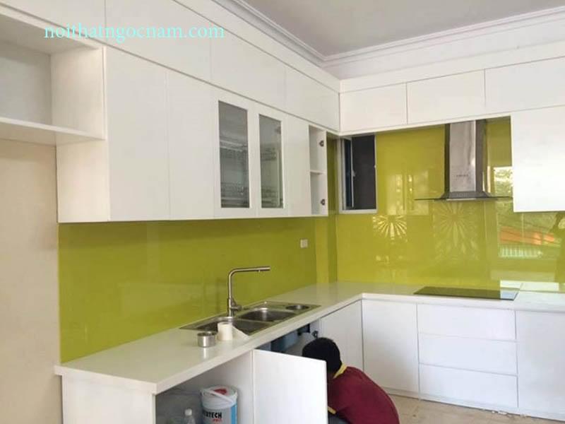Mẫu tủ bếp nhựa cao kịch trần đang hoàn thiện