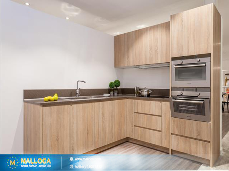 Nếu bạn thích các mẫu tủ bếp đẹp hiện đại nhưng vẫn yêu thích các màu sắc gỗ tự nhiên trong khi bạn không muốn làm tủ bếp bằng các loại gỗ tự nhiên vì lo sợ độ bền thì có lẽ tủ bếp laminate là giải pháp tuyệt vời nhất cho bạn với ưu điểm là có nhiều màu vân gỗ sẽ đáp ứng được các nhu cầu của bạn. Với mẫu tủ bếp này thì giá còn phụ thuộc vào vật liệu làm thùng tủ bếp như: