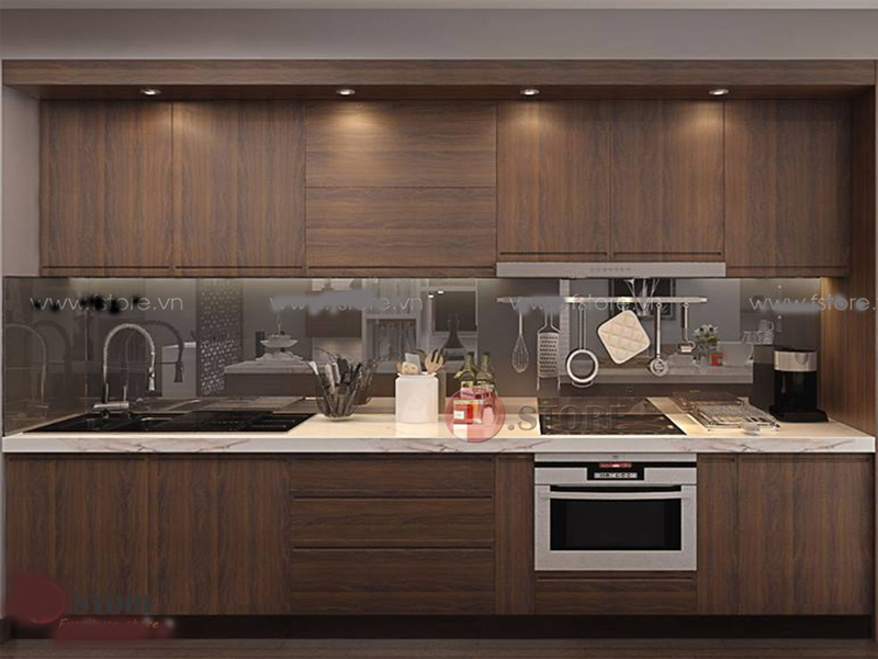 Nói đến tủ bếp chắc hẳn ai trong chúng ta cũng nghĩ về mẫu tủ bếp xoan đào bởi đây là loại gỗ được sử dụng từ lâu trong thiết kế làm tủ bếp. Tủ bếp xoan đào có màu sắc đậm cánh rán với những đường vân gỗ đẹp đặc trưng, sẽ đem đến cho bạn phòng bếp ấm cúng. Tủ bếp xoan đào có mức giá là: 5.000.000 / 1 mét dài (1 mét dài đã bao gồm có cả 1 mét tủ trên và 1 mét tủ dưới, không phát sinh chi phí vận chuyển lắp đặt)