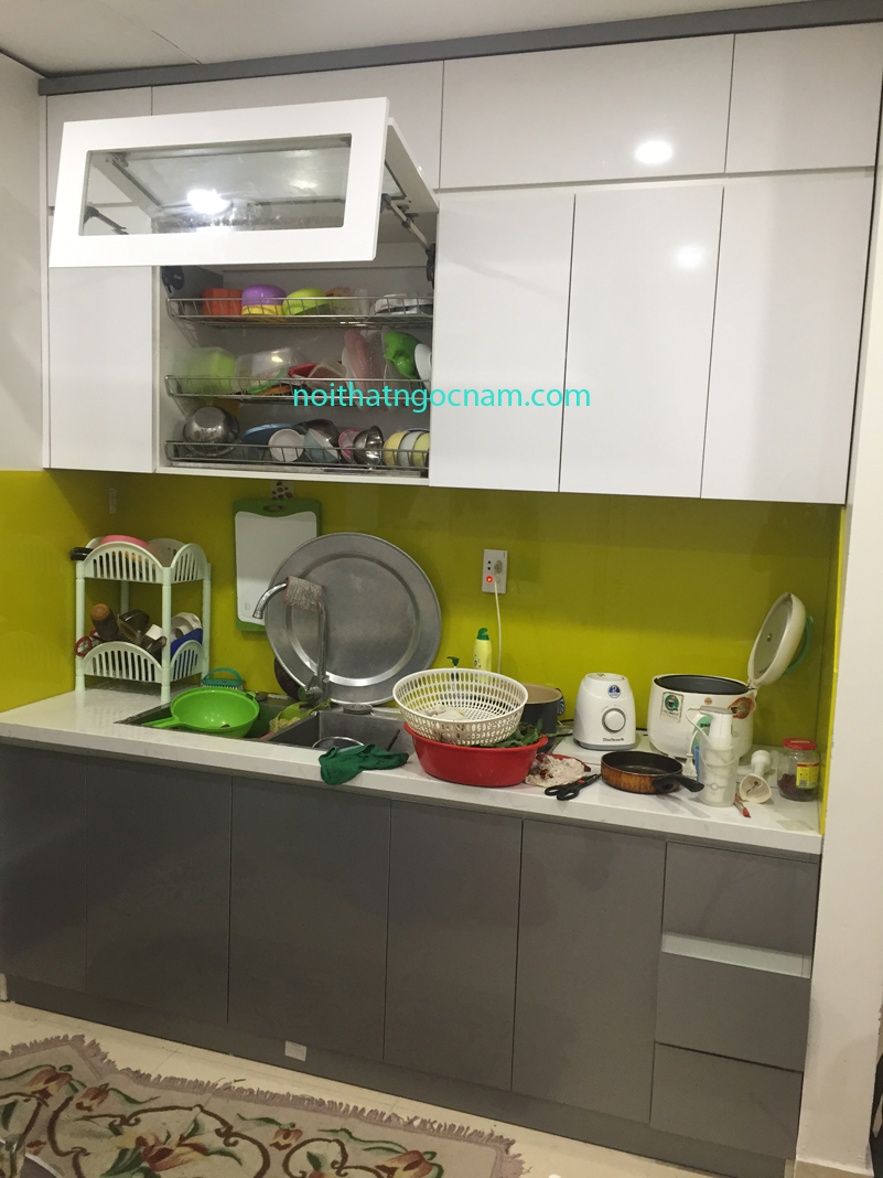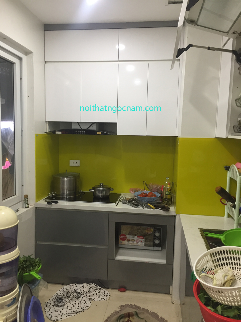 Nội thất ngọc nam nhận thiết kế thi công tủ bếp Acrylic. Chú Đức anh nhà ở chung cư Dương Nội Hà Đông muốn tư vấn thiết kế mẫu tủ bếp đẹp cho phòng bếp gia đình minh. sau khi phân vân lựa chọn chú đã quyết định lựa chọn tủ bếp acrylic bóng giương