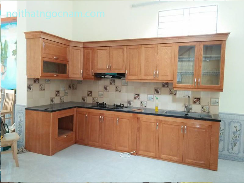 Tủ bếp gỗ sồi Nga khung cánh. Đây là mẫu tủ bếp gỗ sồi Nga rất thích hợp cho những không gian bếp nhỏ hẹp như nhà phố hay đặc biệt nhà chung cư. Những khoang tủ bếp được bố trí hoàn toàn phù hợp với kích thước thực tế của không gian và cả nhu cầu sử dụng cũng như sự thuận tiện cho người nội trợ cũng như cả gia đình.