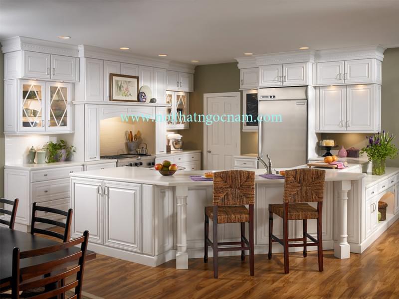 Hiện đại và trang nhã với vẻ bề ngoài có thể thấy được ở mẫu tủ bếp gỗ sồi nga sơn trắng đẹp. Thiết kế phong cách cổ điển trong kiểu dáng, tiện nghi, hiện đại trong công năng sử dụng, tủ bếp gỗ phù hợp với những căn bếp diện tích tương đối rộng rãi và mang lại vẻ đẹp sang trọng và đẳng cấp cho những căn nhà biệt thự, nhà vườn, căn hộ cao cấp...