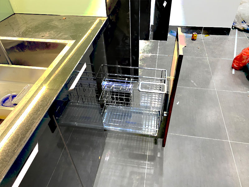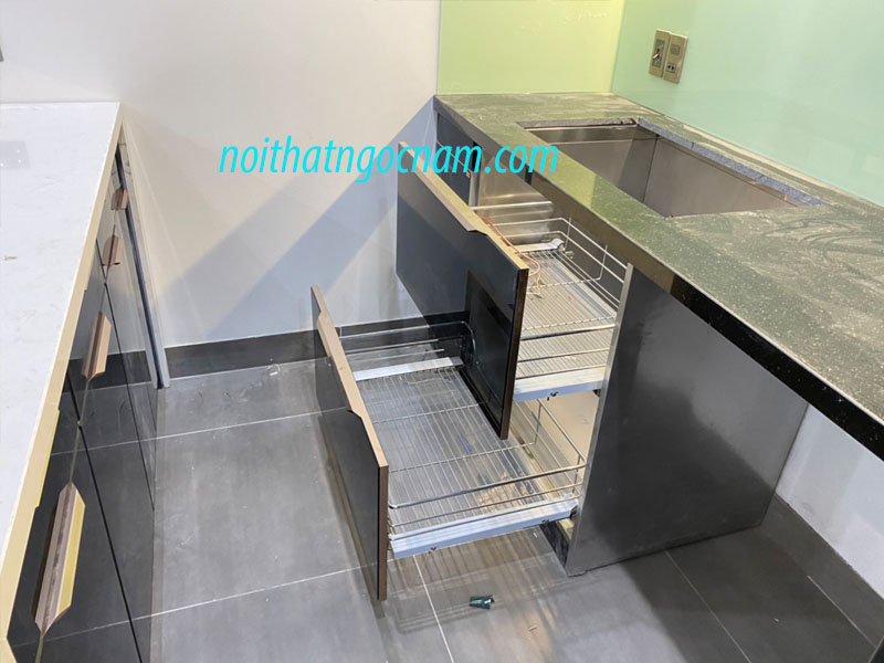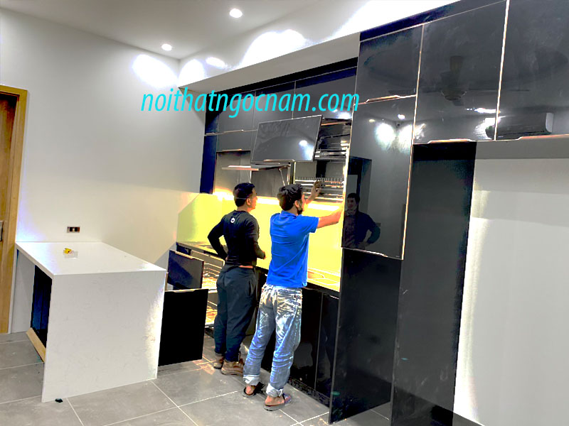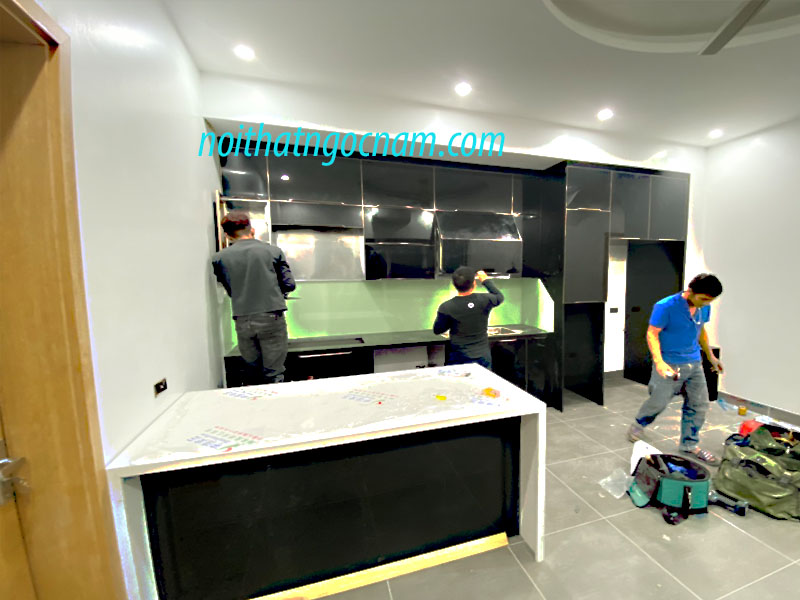 III. Lắp đặt tủ bếp inox cánh kính ck 01 thực tế tại công trình.