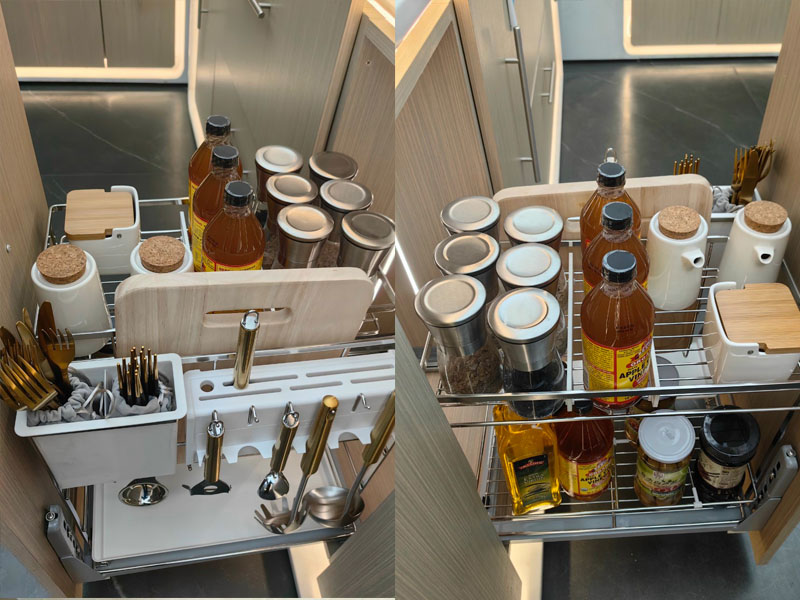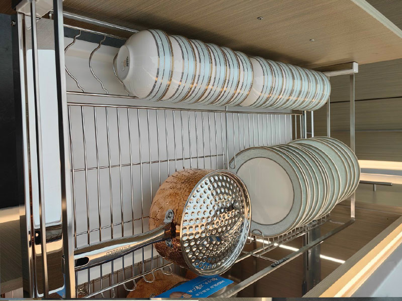 2. Giá phụ kiện tủ bếp inox cánh kính ck01