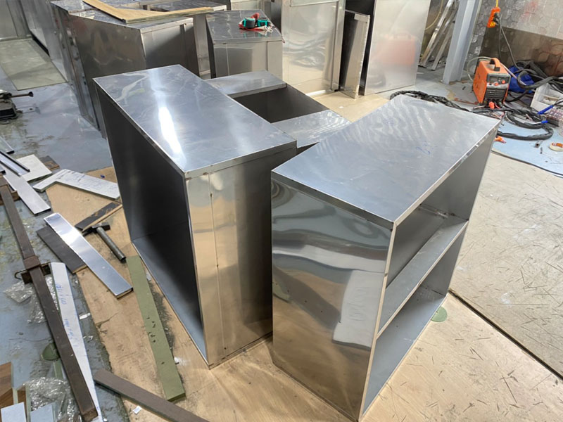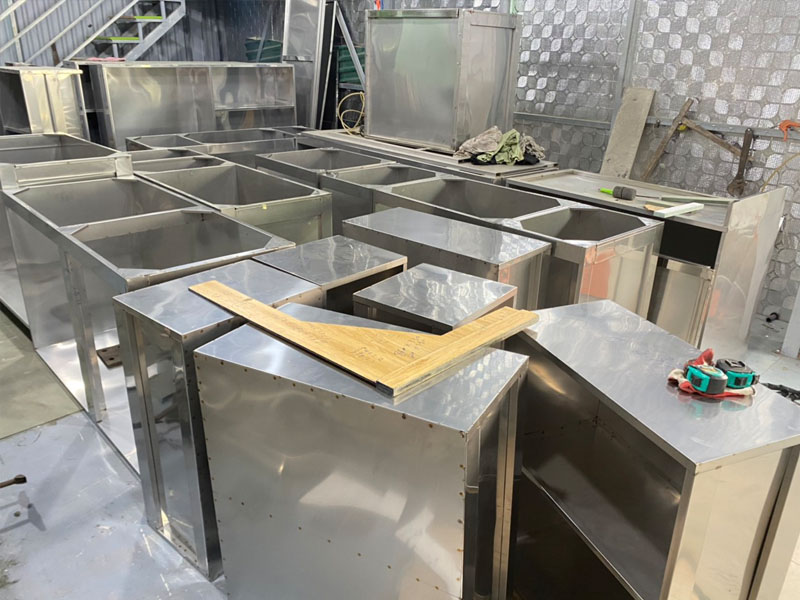 Thùng tủ bếp inox sử dụng phương án hàn băng dài được chia theo từng đoạn tủ dài