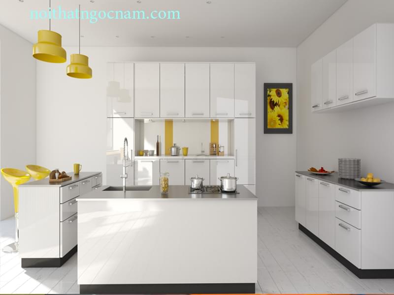Mẫu tủ bếp acrylic bóng giương hiện đại trẻ trung hơn